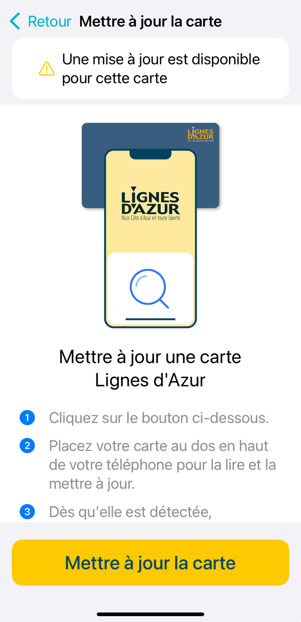 Après l'achat, le titre est en attente d'une mise à jour de la carte pour s'y recharger.